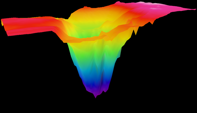 After conducting a bathymetric survey of the lake, he used Surfer to visualize lake bottom “pockmarks”—features created by the constant, vigorous release of gas. At one time, the lake bottom would have been flat. But these gas features were so vigorous that they actually excavated the lakebed and produced deep pockmarks. Surfer’s ability to create and manipulate digital elevation models in 3D was a game-changer in showcasing these features.