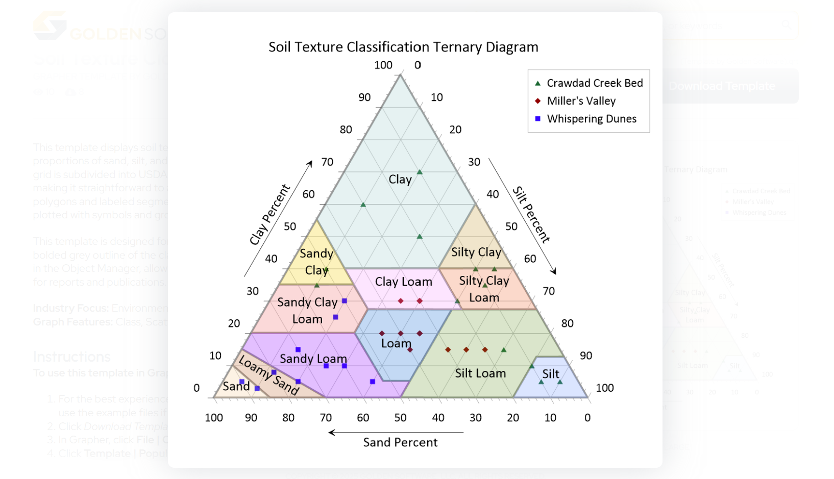 Ready to give it a try? Download the Ternary Frame Template or the  Soil Texture Classification Ternary Diagram Template in the Golden Gallery!