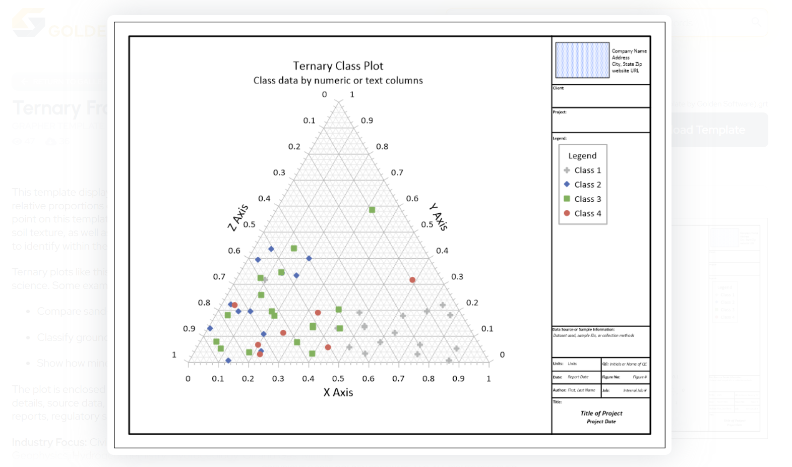 That’s why we recommend using the Ternary Frame Template or Soil Texture Classification Ternary Diagram Template in the Golden Gallery. With them, you’ll bypass the learning curve, eliminate the guesswork, and deliver clear, compelling visuals every time.