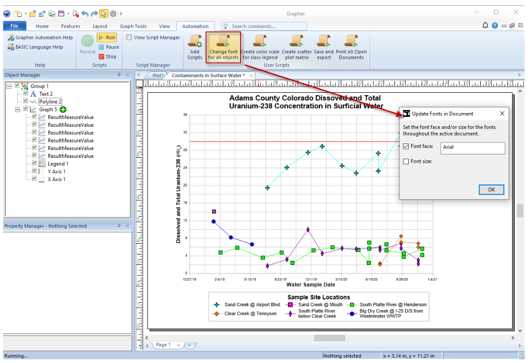 Changing fonts manually across an entire graph can be tedious. When you’re finalizing a report or tailoring a visual for a presentation, consistency matters. That’s where this new Grapher Beta script comes in. With a single command, you can change the font and size if needed for every object in your document at once. It’s fast, uniform, and makes final formatting tasks a breeze.