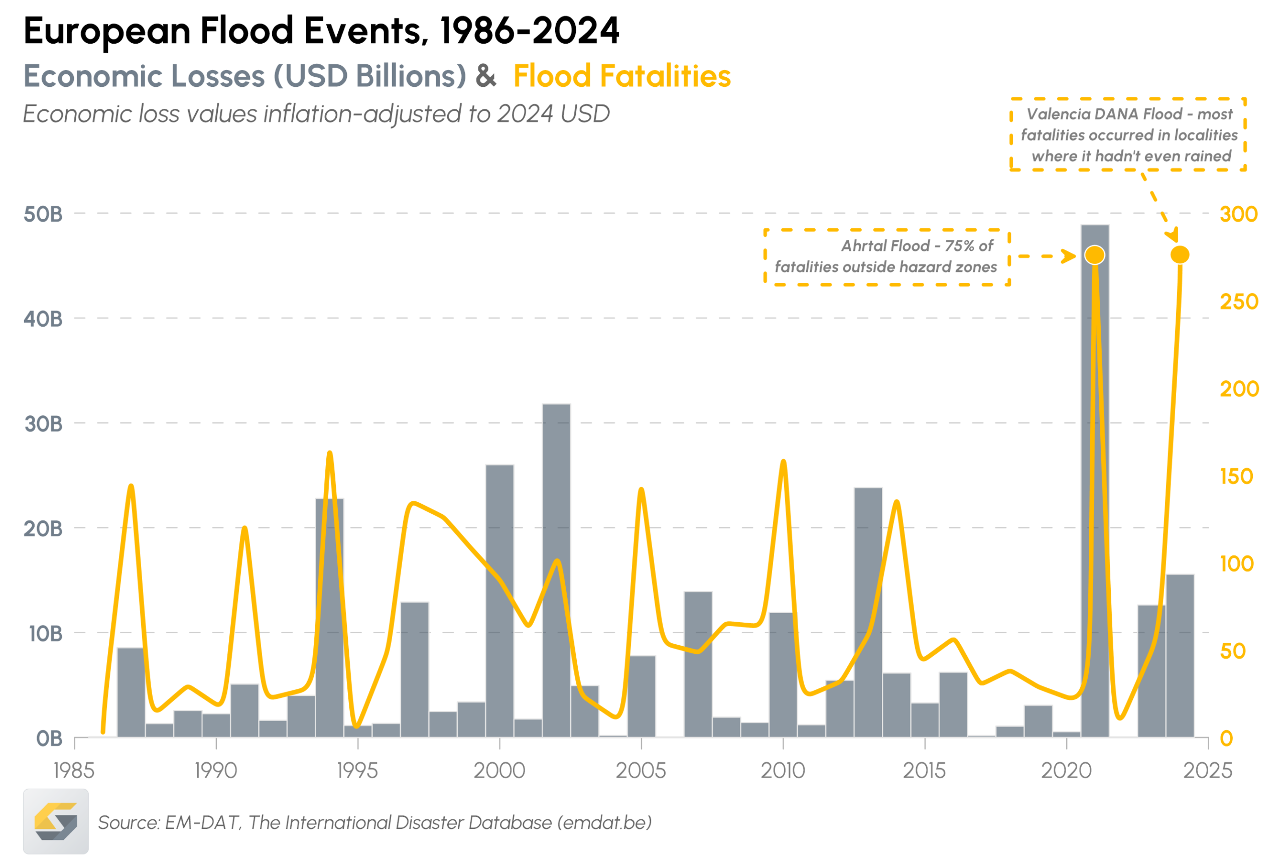 This became painfully clear during the 2021 Ahrtal summer flood in Germany. Fueled by extreme rainfall, water levels rose unpredictably and rapidly, overwhelming flood defenses and inundating towns with little warning. The European Geosciences Union (EGU) indicates that 190 people lost their lives. Additionally, homes and businesses were ruined by the force of water. One of the most sobering lessons from Ahrtal was how poorly understood high-water zones can turn into catastrophic blind spots. According to the EGU, 75 % of the flood fatalities occurred outside of the mapped hazard zones.