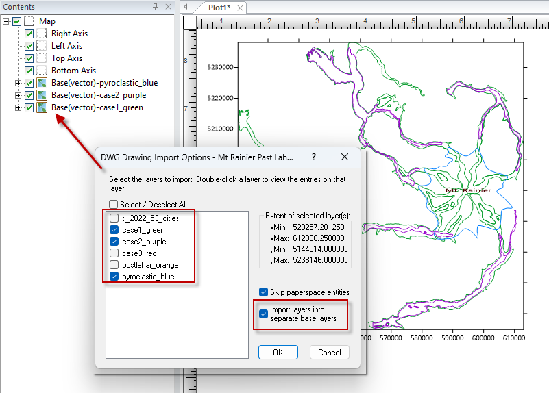 For many geoscience and engineering projects, CAD files are a central part of the workflow. With this release, Surfer now supports DWG import and export, giving you a smooth, reliable bridge between Surfer and CAD environments. You can bring DWG files straight into Surfer without conversion steps, preserving geometry, structure, and symbology with far greater fidelity. And when your work is ready to share, you can export your updated or newly created layers back to DWG.