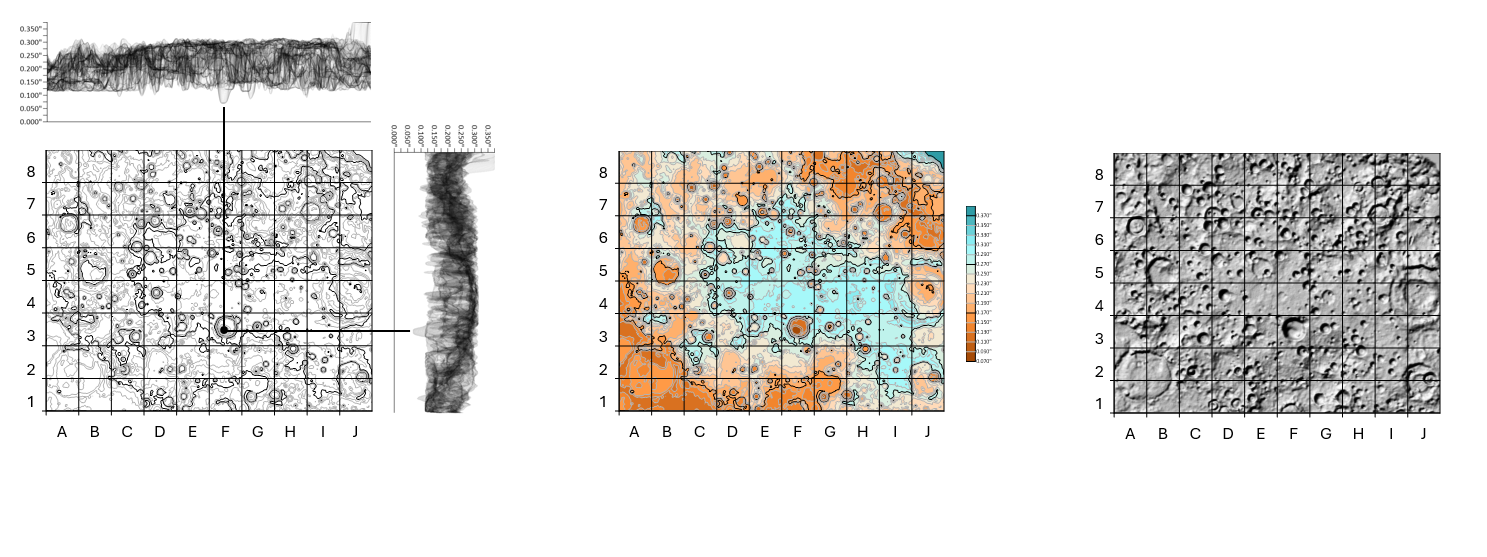 The same terrain map used in CAD is also loaded into Surfer to generate three distinct maps that serve as the “answer key” for each board. The first is a terrain (height) map that gives users a top-down visual of surface thickness variation — it also comes with two wireframes that provide more detail.